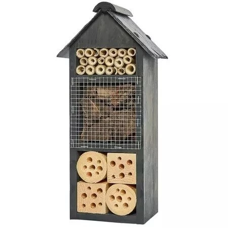 3 separate layers of nooks, crannies and hidey holes are attractive to a wide range of insects who are looking for a safe and cosy sanctuary to nest in. The mixture of natural wood, bamboo and bark creates varied habitats to suit all types of insects. The genuine dark grey slate roof makes this mansion a welcome addition to your garden.
