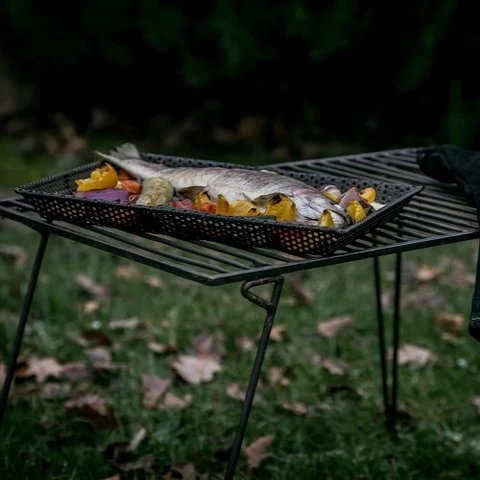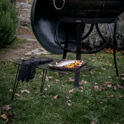 A handy dual-purpose accessory to place next to your Kadai. Use with legs down as a table for hot pans or alternatively fold away the legs to convert to a trivet on your table.